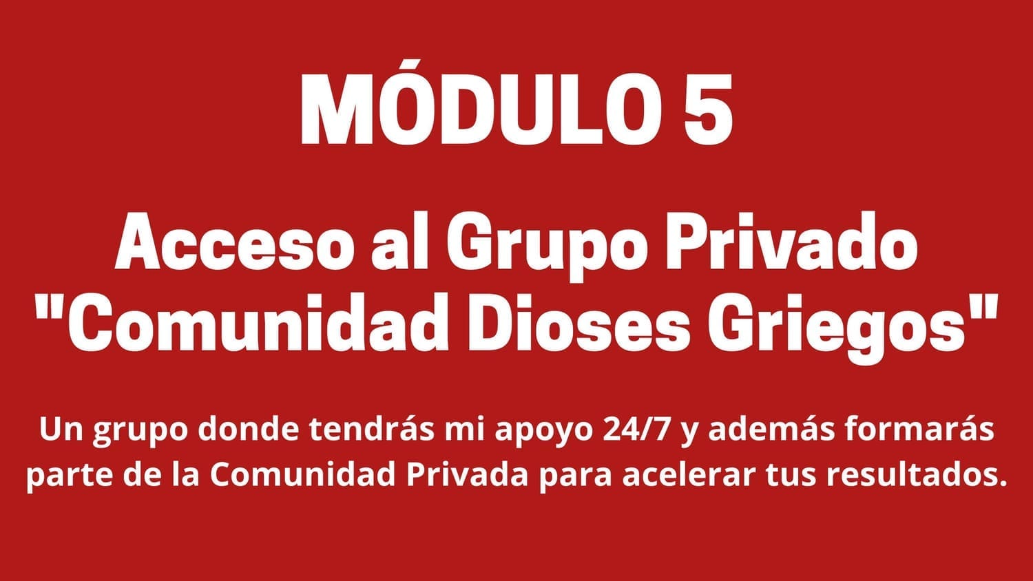 Acceso al Grupo Privado "Comunidad Dioses Griegos" – Un grupo donde tendrás mi apoyo 24/7 y además formarás parte de la Comunidad Privada para acelerar tus resultados. Valorado en $297