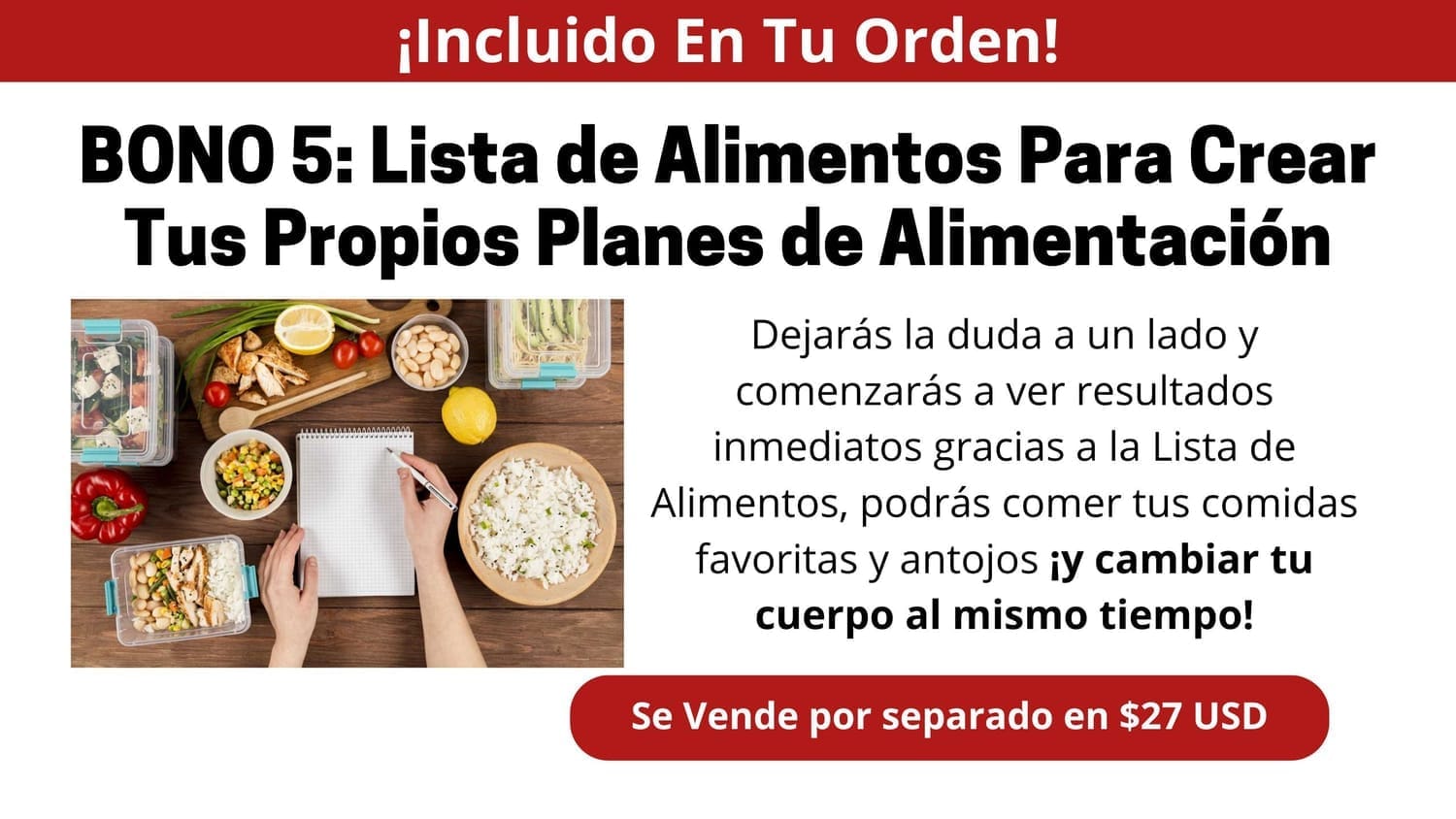 BONO #3: Lista de Alimentos Para Crear Tus Propios Planes de Alimentación Valorado en $97