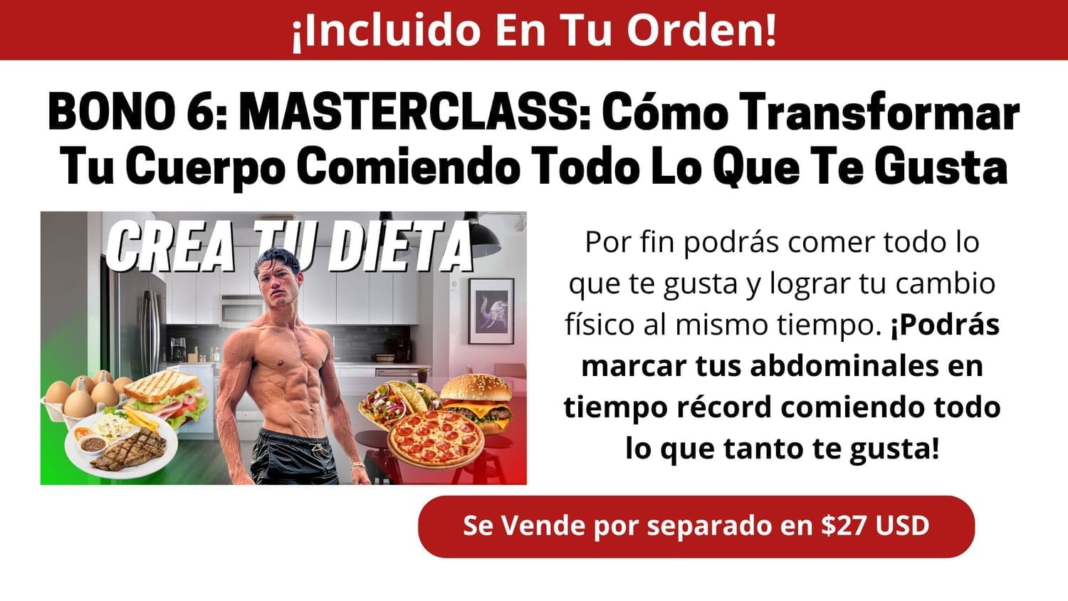 BONO #4: MASTERCLASS: Cómo Transformar Tu Cuerpo Comiendo Todo Lo Que Te Gusta Valorado en $297
