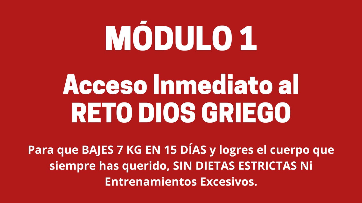 Acceso Inmediato al RETO DIOS GRIEGO - Para que BAJES 7 KG EN 15 DÍAS y logres el cuerpo que siempre has querido, SIN DIETAS restrictivas Ni Entrenamientos Excesivos.